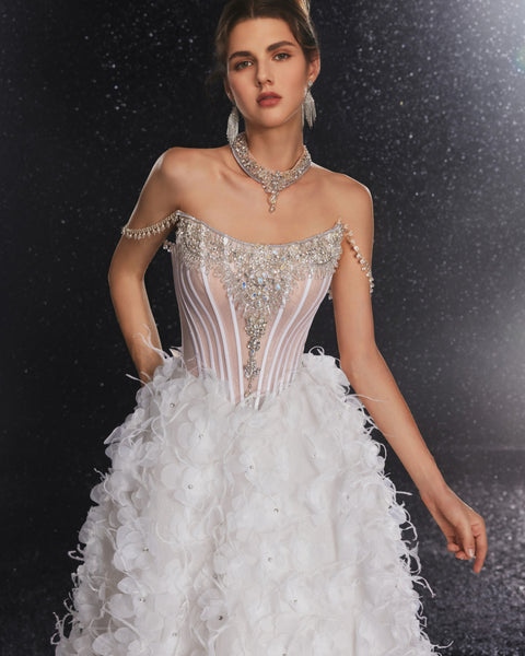 The Oceanic Radiance Gown HL058 radiates elegance with its graceful draping and intricate, ocean-inspired accents—perfect for making a lasting impression.