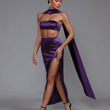 Elegant Purple Satin Strapless Sash Gown for a Stunning Look