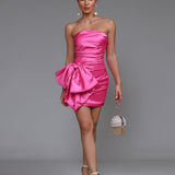 Elegant Mini Strapless Dress with Bow Tie