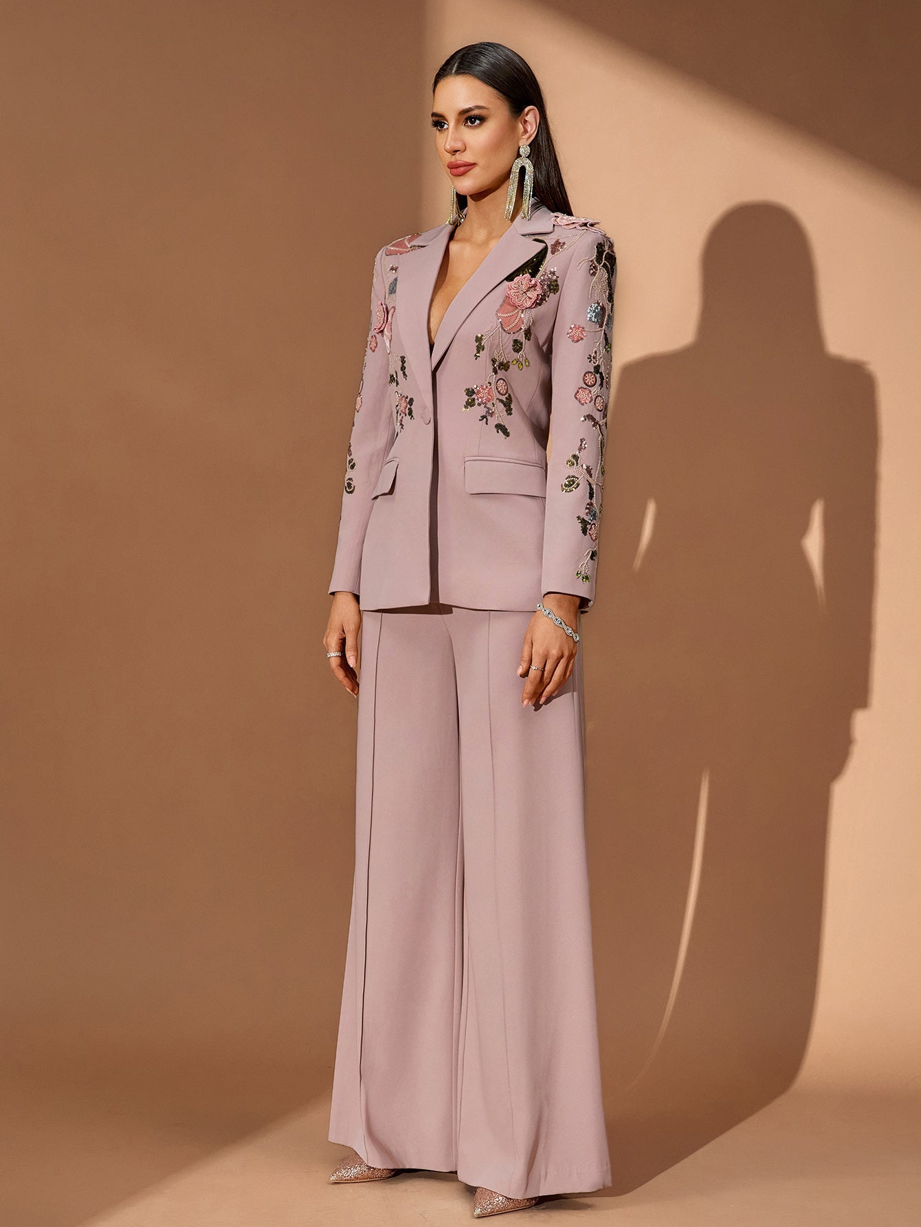 Sequin Floral Embroidery Couture Fall Suit
