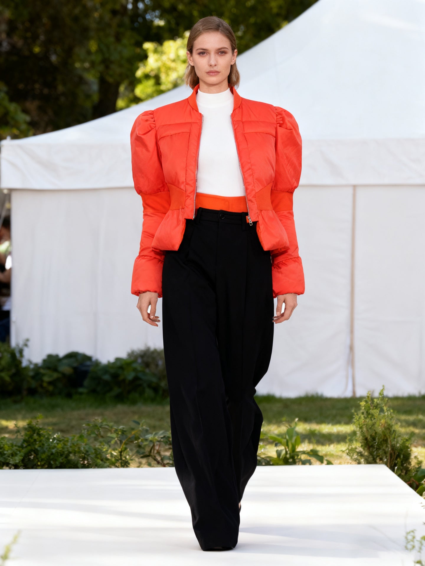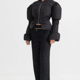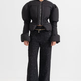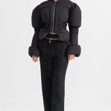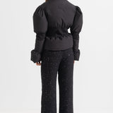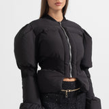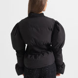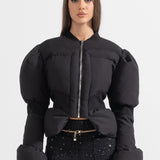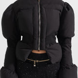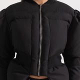 Cropped Puffer Jacket With Fitted Waistline - Black
