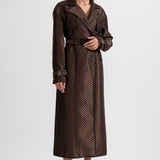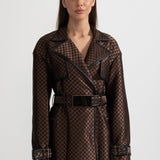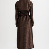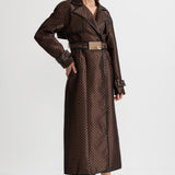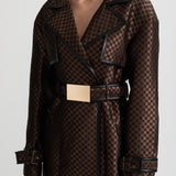 Jacquard Trench Coat With Gold Buckle Waist Belt - Brown