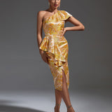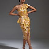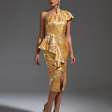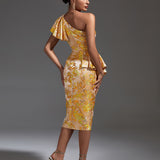 Elegant Midi Bodycon Dress with Slanted Shoulders and Attractive Slit