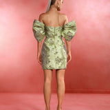 Mini Floral Dress with Balloon Sleeves and Off-Shoulder Design