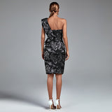 Make a bold and glamorous statement with this exquisite one shoulder frill bodycon dress. From its sleek silhouette to the alluring frills, this dress was designed to flatter the body while adding an air of sophistication. Its unique design and luxurious construction are sure to turn heads at any event.
