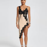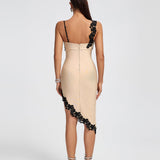 Irregular Lace-trim Midi Bandage Dress