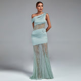 Maxi Satin and Lace Dress with Asymmetrical Slit