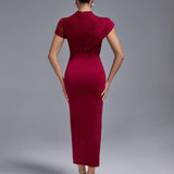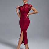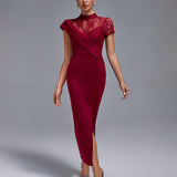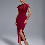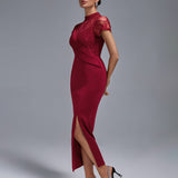 Wine Lace Split Long Dress