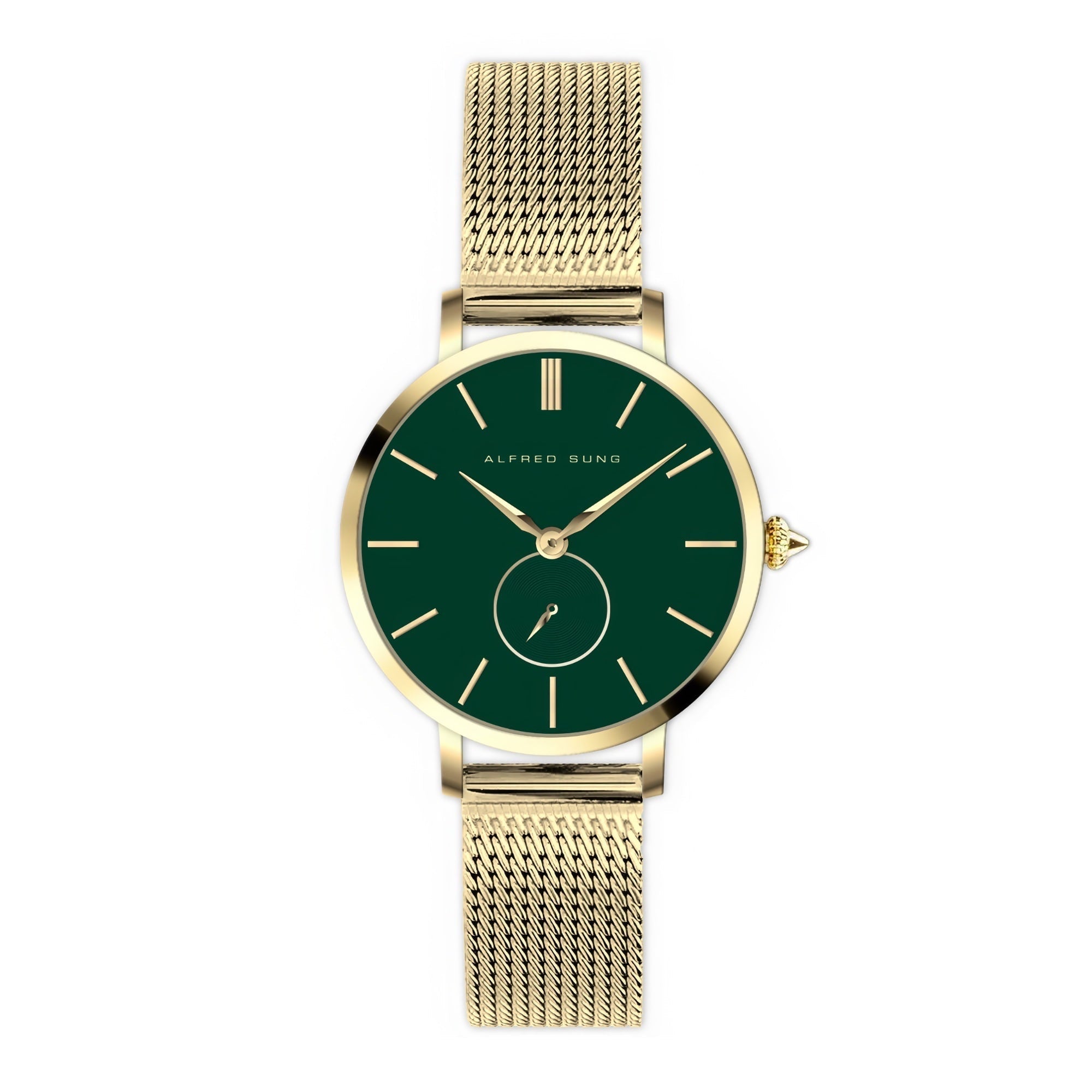 Alfred Sung Serenity Green Dial Gold Bracelet Ladies watch