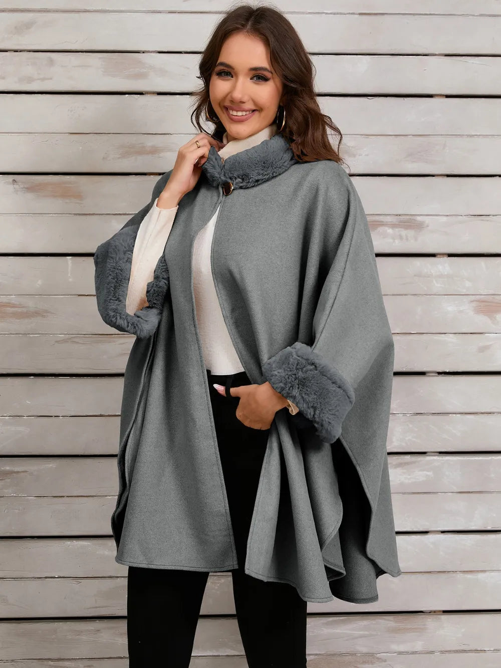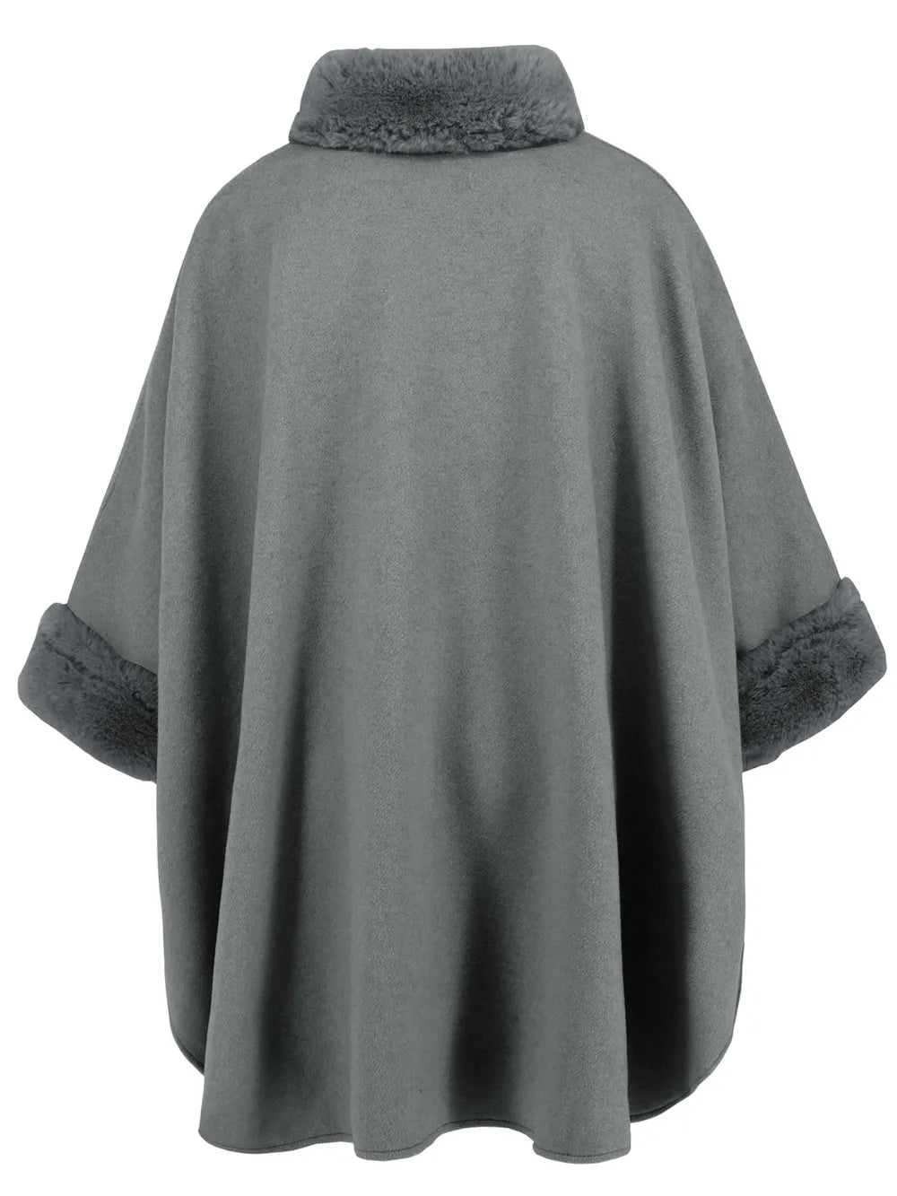 Fuzzy Trim Long Sleeve Poncho