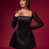 Elegant Dolly Mini Satin Dress with Stylish Sequin Embellishments