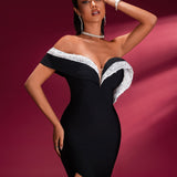 Off-Shoulder Bandage Dress with High Slit for an Elegant and Bold Style