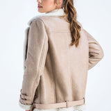 Beige Biker Bomber Sheepskin Jacket with Cream Shearling Fur