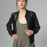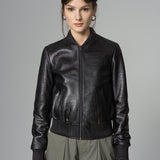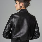 Black Leather Jacket with Crocodile Skin Print
