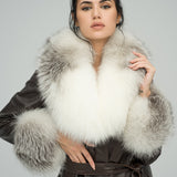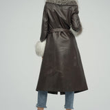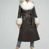 Brown Genuine Maxi Lambskin Overcoat with Arctic Fox Fur Collar and Cuffs