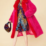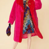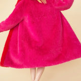 Pink Knitted Bamboo Faux Fur Maxi Coat