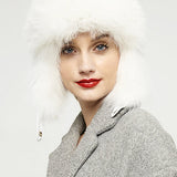 White Genuine Arctic Fox Fur and Nappa Lamb Leather Hat