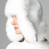 White Genuine Arctic Fox Fur Sheepskin Hat