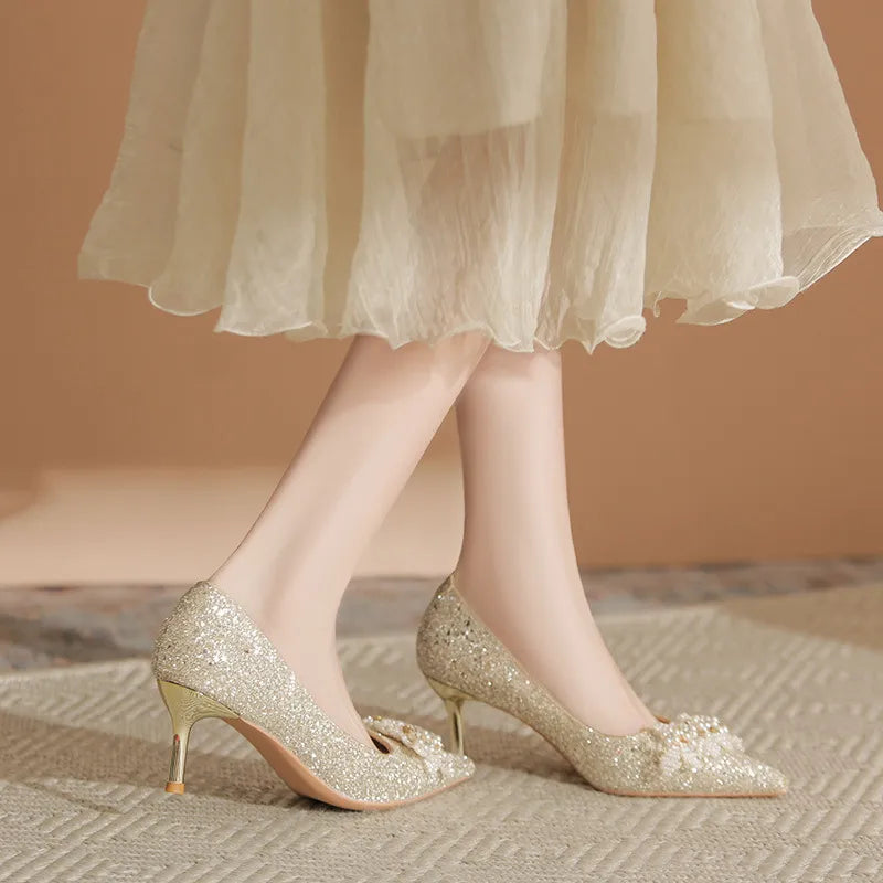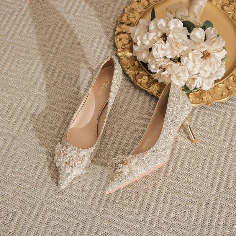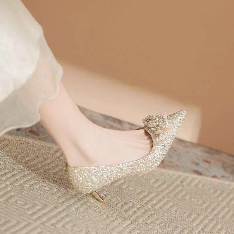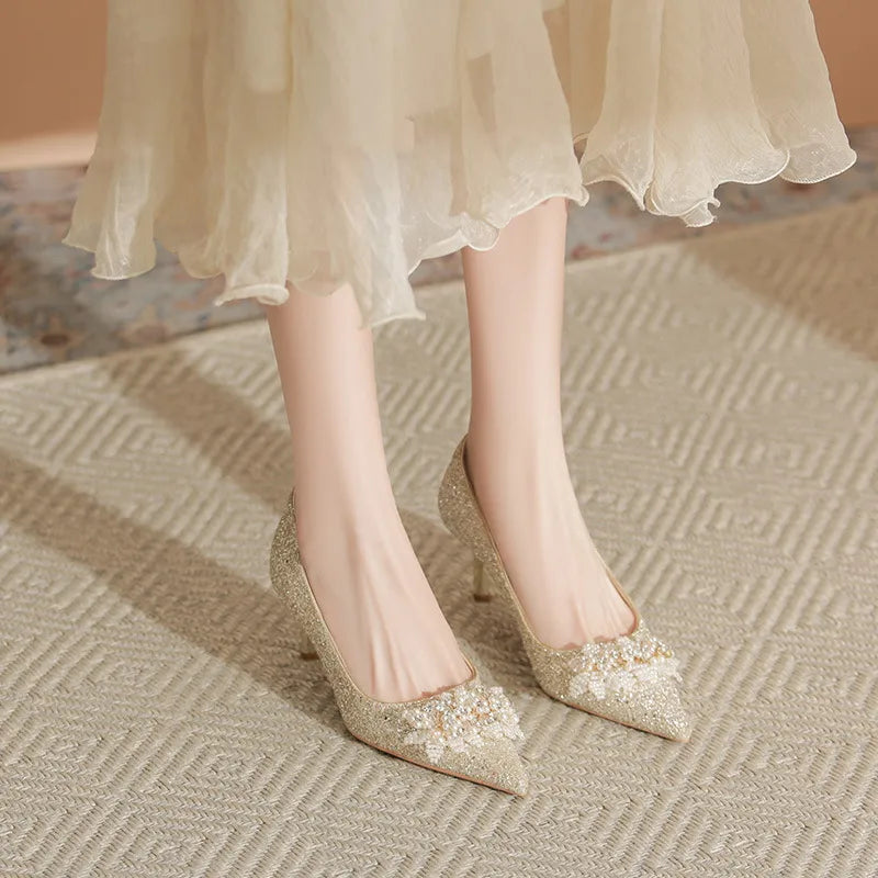 Pearl Detail Point Toe Pumps