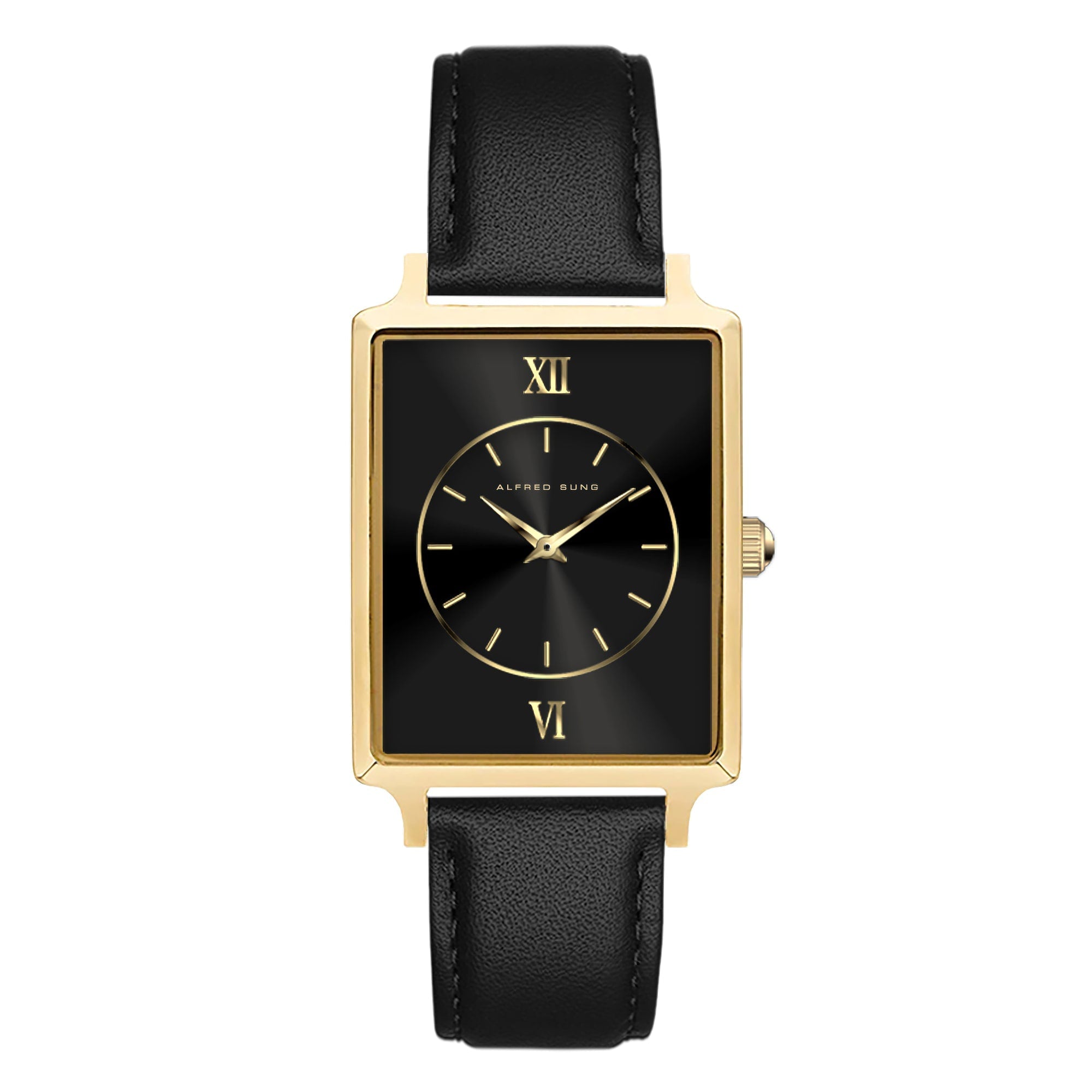 Alfred Sung Horizon Sunray Black Dial & Leather Strap Ladies watch