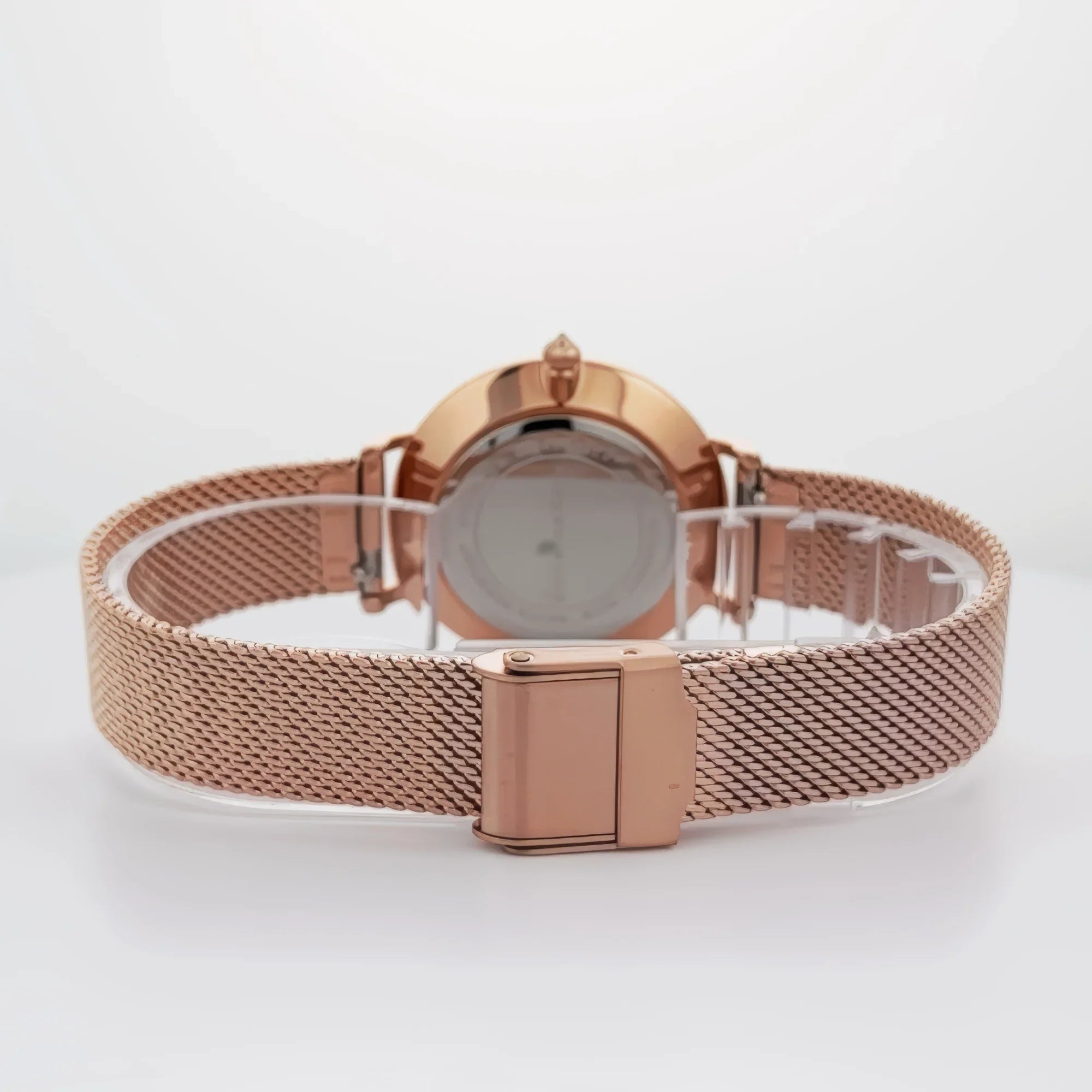 Elegant Design – Featuring a 33mm round rosegold case and a matching rosegold stainless steel bracelet, this watch is a statement of refined elegance. The secure clasp ensures a comfortable and stylish fit.