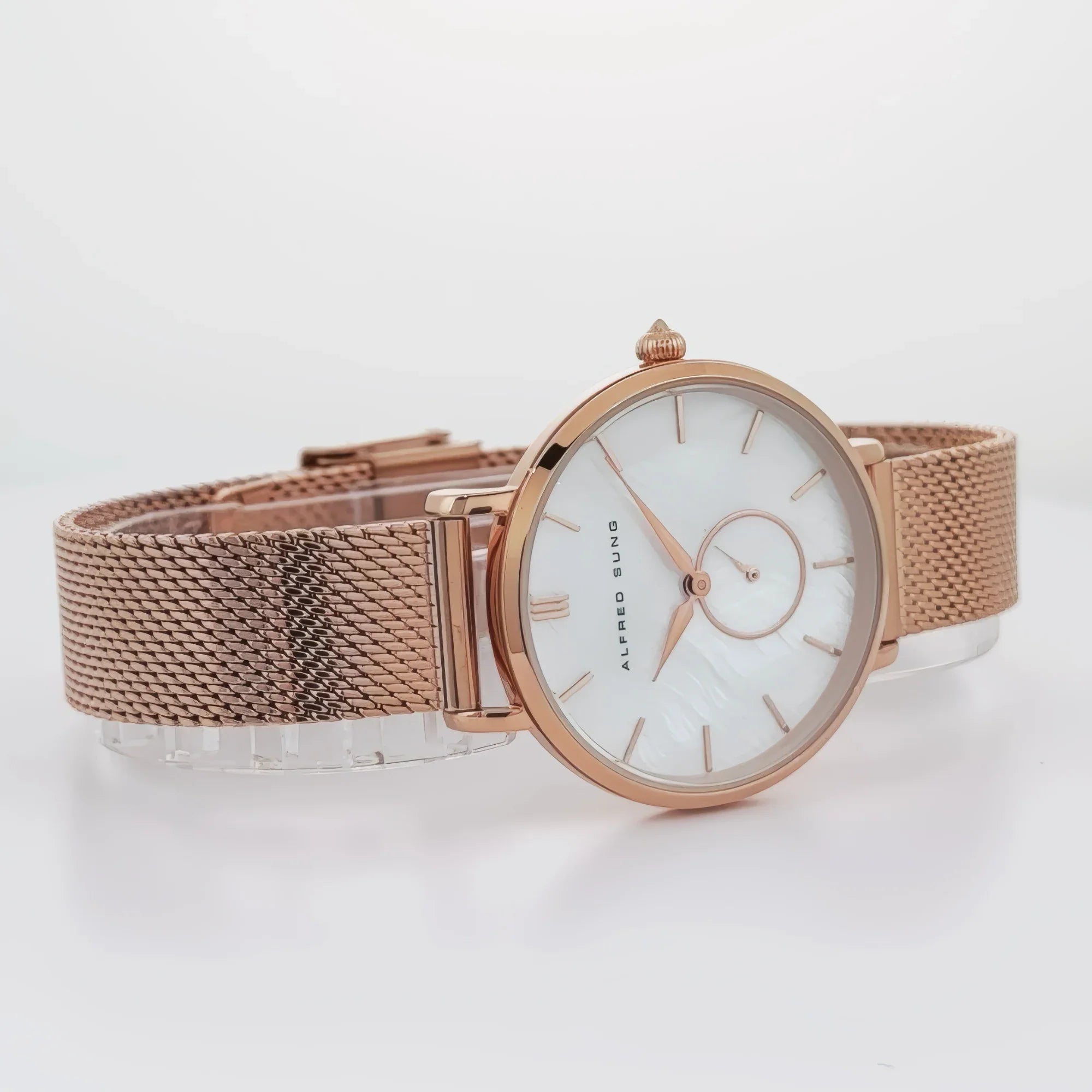 Alfred Sung Serenity Mother of Pearl White Dial Rosegold Bracelet Ladies watch