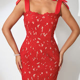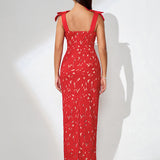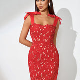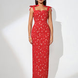 Embroidered floral dress with thin straps and cut-out details for an elegant look