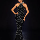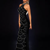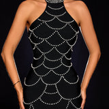 Halter Pearl Chain Web Bandage Dress
