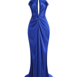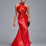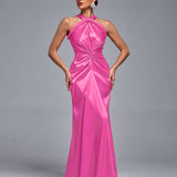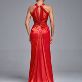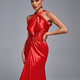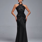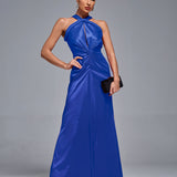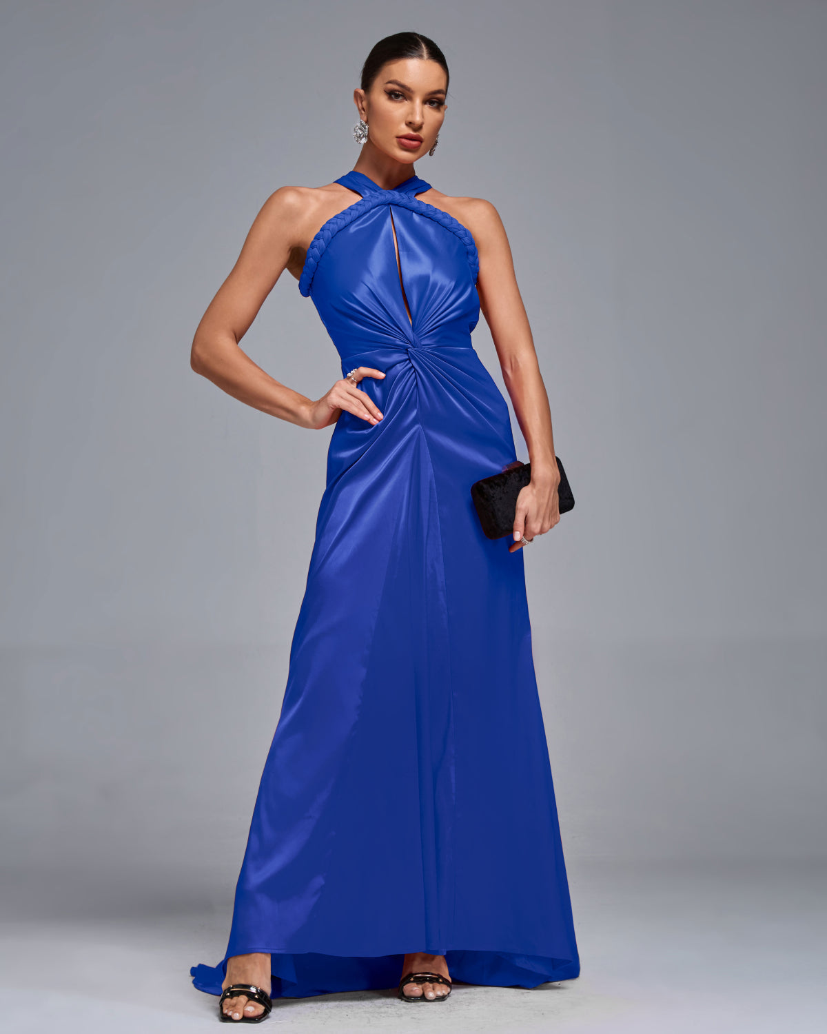 Glamorous Evening Dress with Satin Halter Neck and Elegant Braid Details