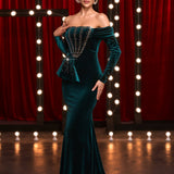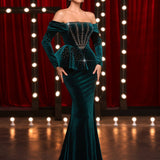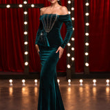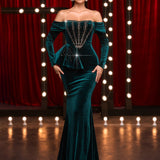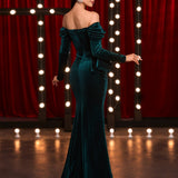 Off Shoulder Velvet Fishtail Maxi Dress