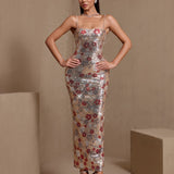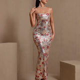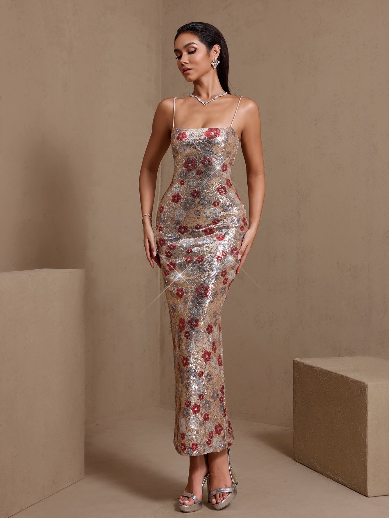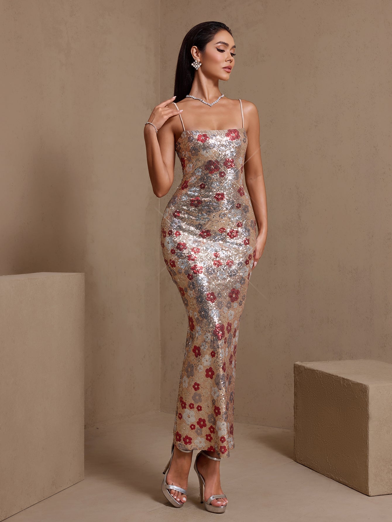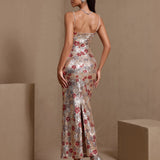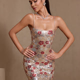 Red Floral Embellished Sequin Dress