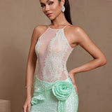Sexy Sequined Flower Lace Sheer Dress