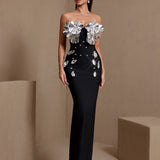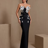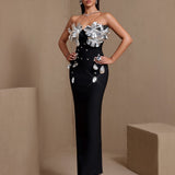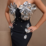 Silver-Plated Flowers Bandage Maxi Dress