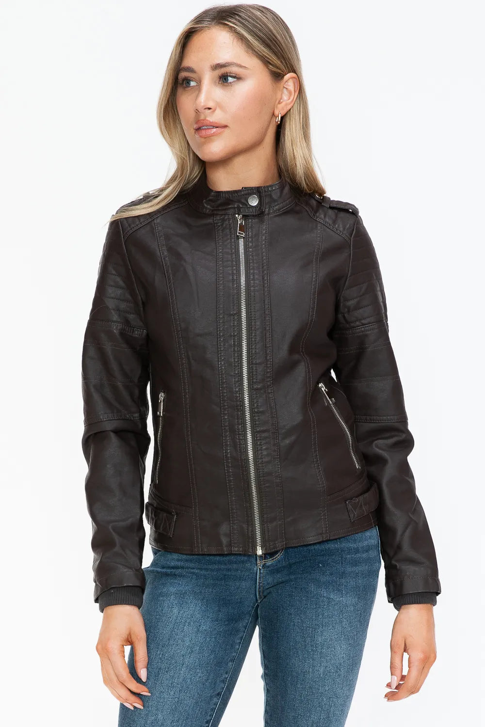 Snobbish PU Leather Biker Jacket with Side Zip Pockets