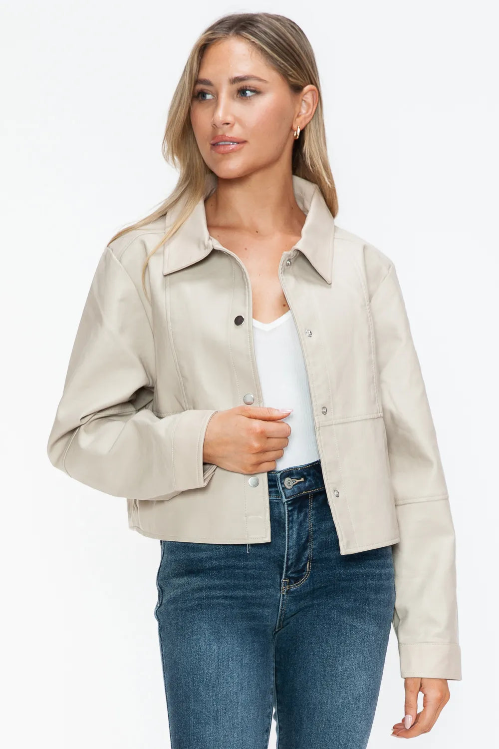 Snobbish Snap Down Long Sleeve PU Leather Jacket