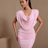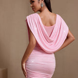 Swing Collar Rhinestone Ruched Mini Dress
