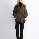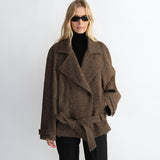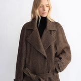 "Warm Cocoon" Italian Herringbone Wool Classic Lapel Micro-coon Short Wool Coat for Women