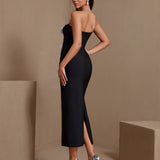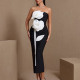 White Floral Applique Strapless Bandage Dress