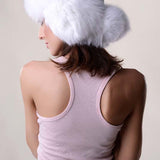 White Genuine Arctic Fox Fur Hat with Lamb Nappa Leather